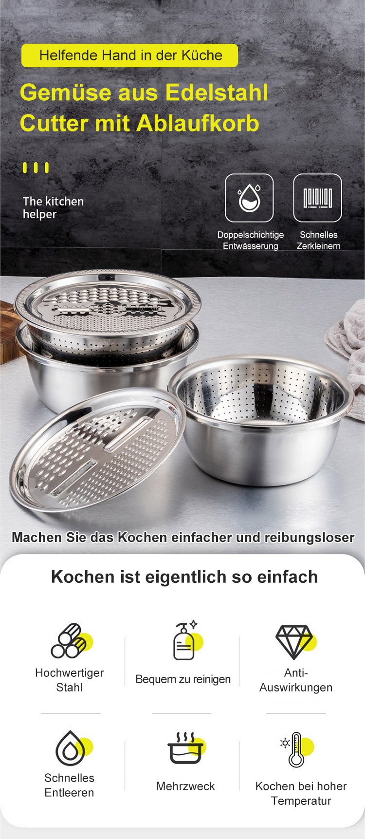Reibenbecken, dreiteiliges Set